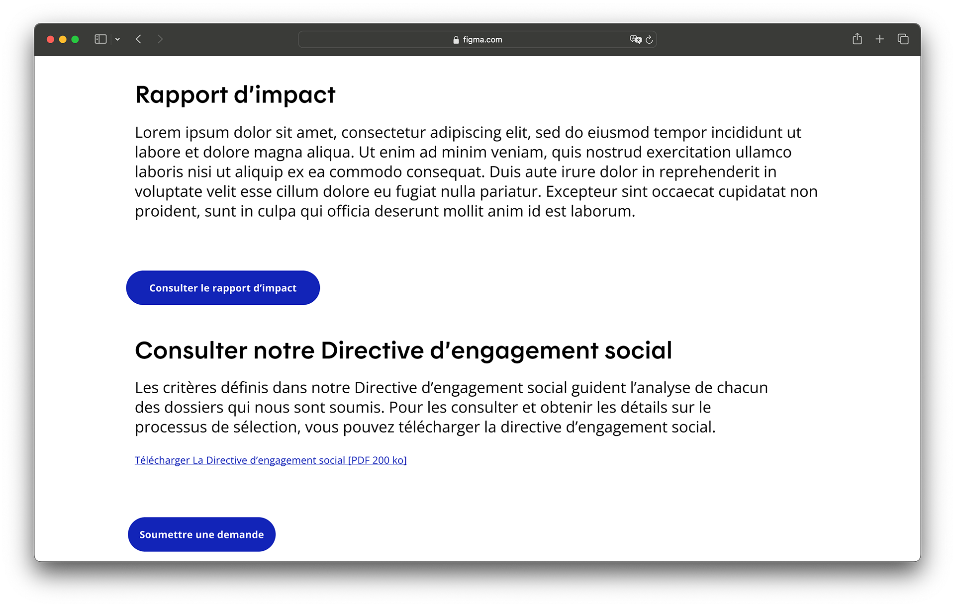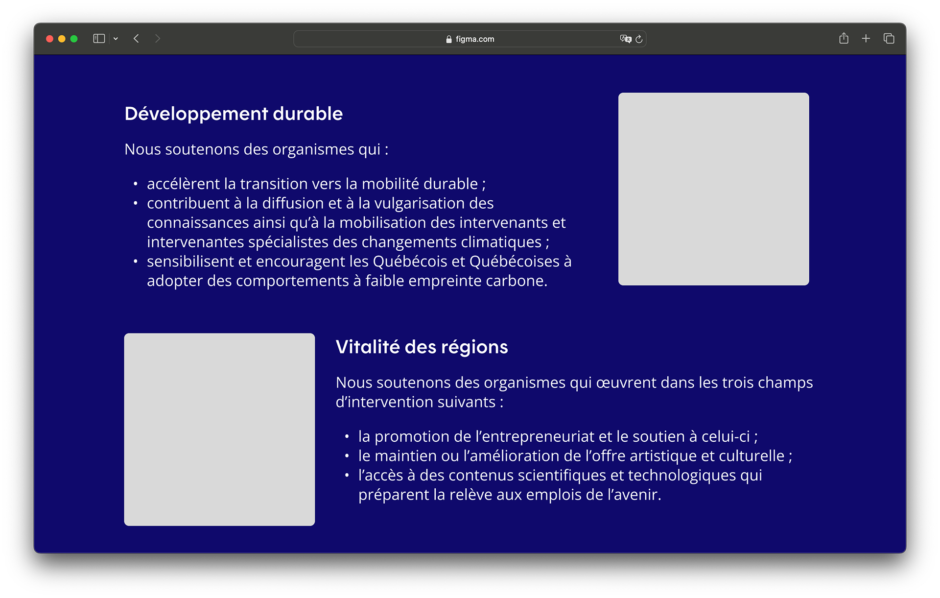 Mandat de design UI/UX des pages site web, faites sur Figma.